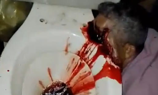 詳細不明。トイレの便器に顔がめり込み、血まみれになったまま死んでいる男性の映像。どういう死に方したらこうなるの?
