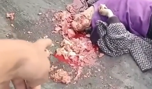 お決まりのグロ「顔グチャ」。トラックに轢かれたらそらそうなるわ… グロ 2025.05.30 見てこれ!シャーベット(笑) 緑色の大きいトラックに頭を轢き潰されてしまった女性(?)。頭蓋骨と顔の肉が砕け散り、まるでシャーベットのよう。管理人が個人的に思っている事として、こういうシャリシャリとした死体に対して鮮度を求めてしまうの分かる人いる?