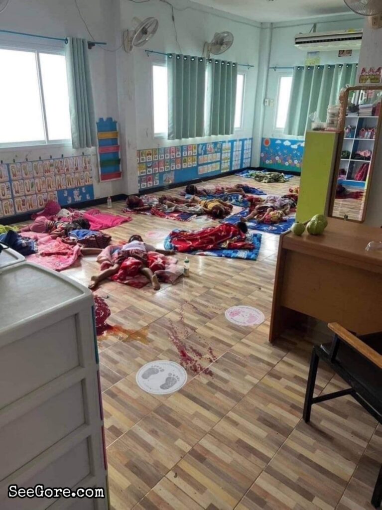 子供含め34人を殺害したクズ野郎がこちら…。 グロ 2025.07.092025.07.13 自殺して逃げるなよ タイで起こった事件。2022年10月6日、元警察官の”Panya Khamrab”という男が保育園に侵入し、34人を殺害した。そのうち22~24人が子供だとされる。保育園で虐殺を繰り広げた後、自身の妻と息子を殺害した。麻薬所持による警察官としての職を解雇された過去があり、彼が起こした動機について、麻薬の使用が原因だと推測されている。保育園の可愛らしい部屋の中でこんなことが起こるなんて、悲惨すぎる…。