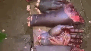 人間のアラ出汁を用いたグルメアフリカの映像。既に解体済みの人間の体の一部を鍋に入れて煮込んでいる。遊んでいるのか料理しているのか分からないけれど、気持ち悪い。すっごい不味そう。