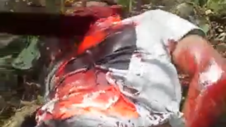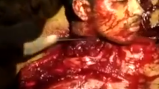 かなり若そうミャンマーの動画。ピンクの服を着た若く見える女性が目隠しをされた状態で座らされている。すぐに斬首を開始し、斬首される女性は悲鳴を上げながら体勢を変えて抵抗する。この状態から生きる道は残されておらず、他と同様に斬首されて人生の幕を...